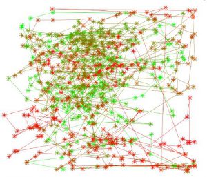 Analyses flow step 5: For further quantitative description of how gaze travels across the painting at individual and group level, we adopted methods of scan path comparison (summarised in Kübler 2016), dealing with data-specific biases in art-works, noisy measurements, subsequent visits to the same or nearby image regions, and reliance on a priori defined semantic regions of interest (ROIs). Our methods are based on classification of subsequence frequencies (‘Sally’: Rieck, Wressnegger, & Bikadorov, 2012) in longer transition sequences (such as exploring Pollock paintings) and used machine learning techniques to best discriminate the two paintings based on many combinations of sequence and sub-sequence transcriptions, thus going beyond Markov Chain models.